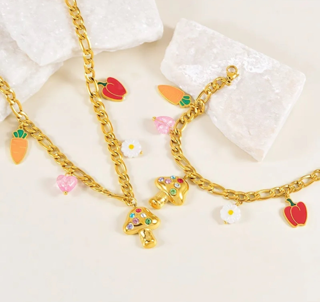 Set en steel, cadena y pulsera, tienen extensión